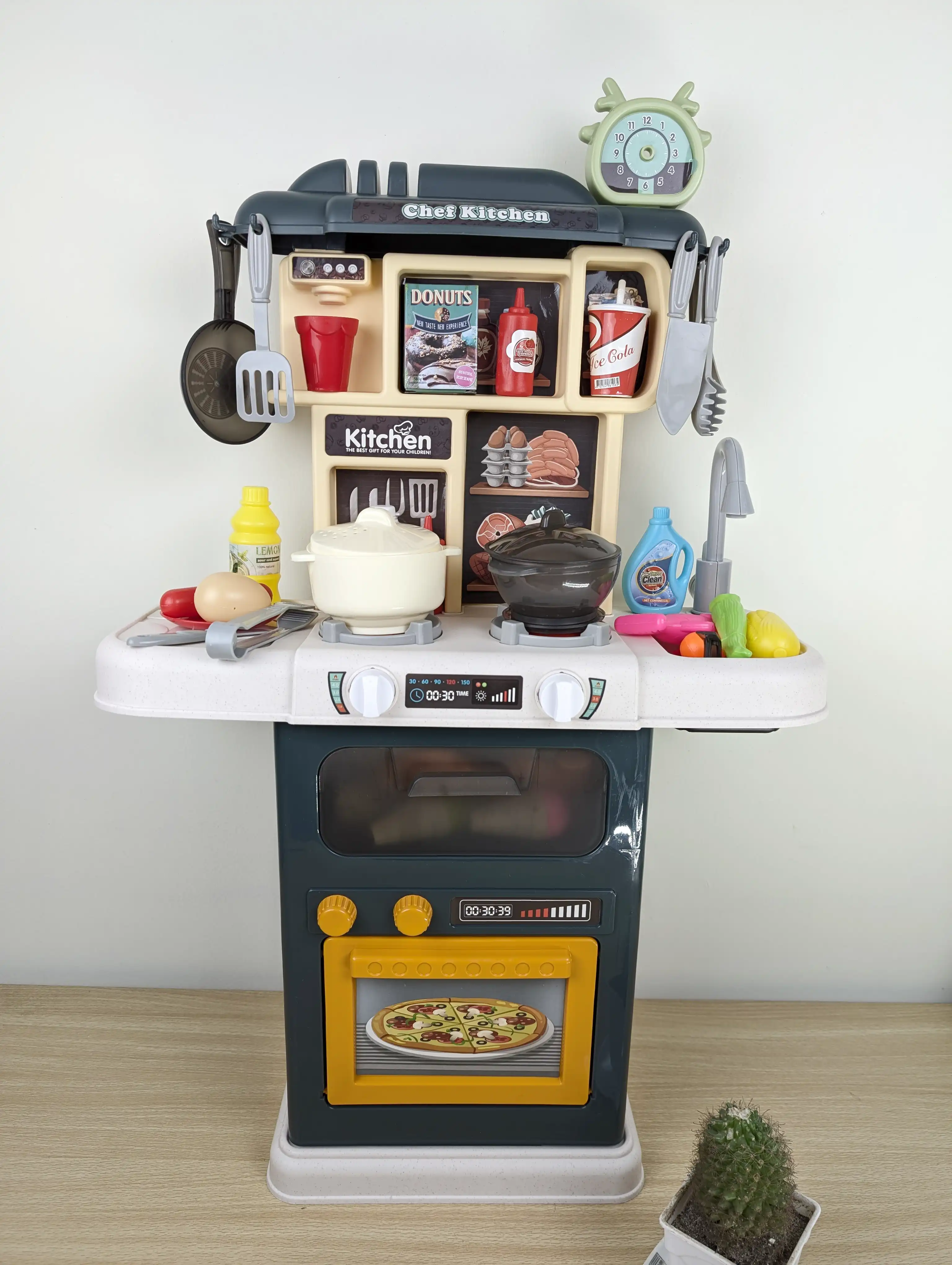 Create a realistic and fun culinary experience for your child with the Chef Kitchen Play Set. This comprehensive 64-piece kitchen accessory set is packed with interactive features designed to mimic a real kitchen, providing endless hours of imaginative role-play. From an electronic stovetop with lights and sounds to a working water faucet and color-changing play foods, this set has everything a little chef needs to cook up a storm. Itâs the perfect toy to encourage creativity, social development, and a love for cooking.